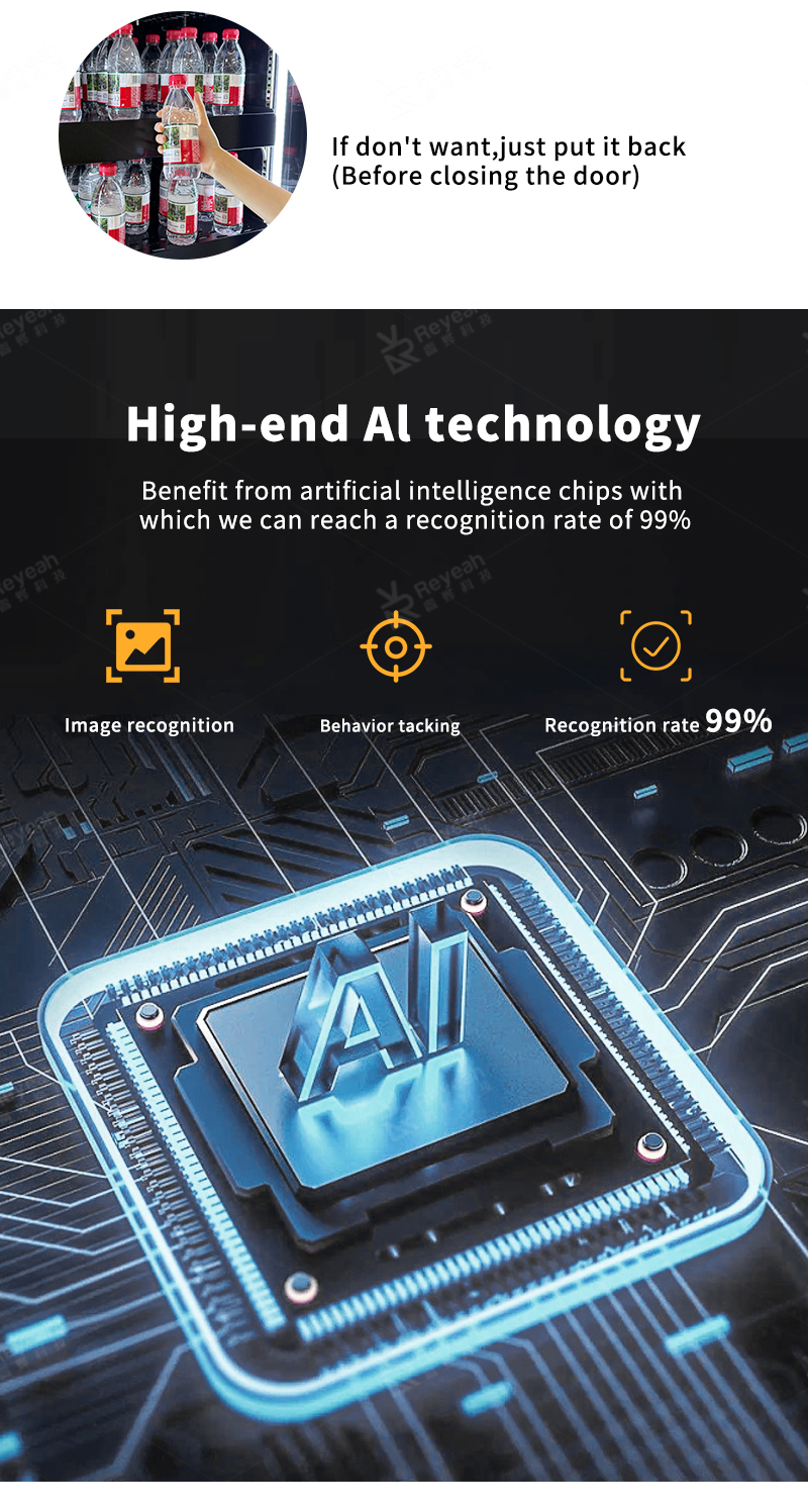 1. Product Identification and Touchless Purchase: Users simply hold a product in front of the camera. The AI system captures the image in real-time and compares it against a vast product database using deep learning models. It accurately identifies the product category, brand, and even specific SKU (e.g., "330ml can of Coca-Cola" vs. "500ml bottle of Coca-Cola") within milliseconds.This enables the ultimate "Grab and Go vending machine" shopping experience. Users no longer need to find product numbers, scan barcodes, or manually check out. After selecting their items, the system automatically completes identification and payment. This process is not only faster but also more hygienic and safer, especially in the post-pandemic era.